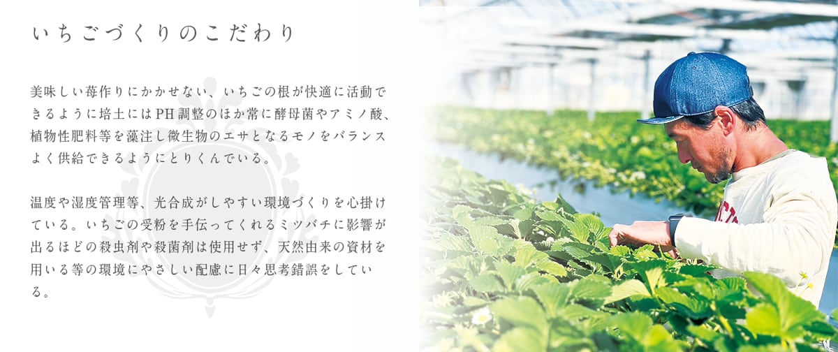 イチゴを通して皆様の明日への活力、感謝の気持ち、笑顔を創り続けて参ります。